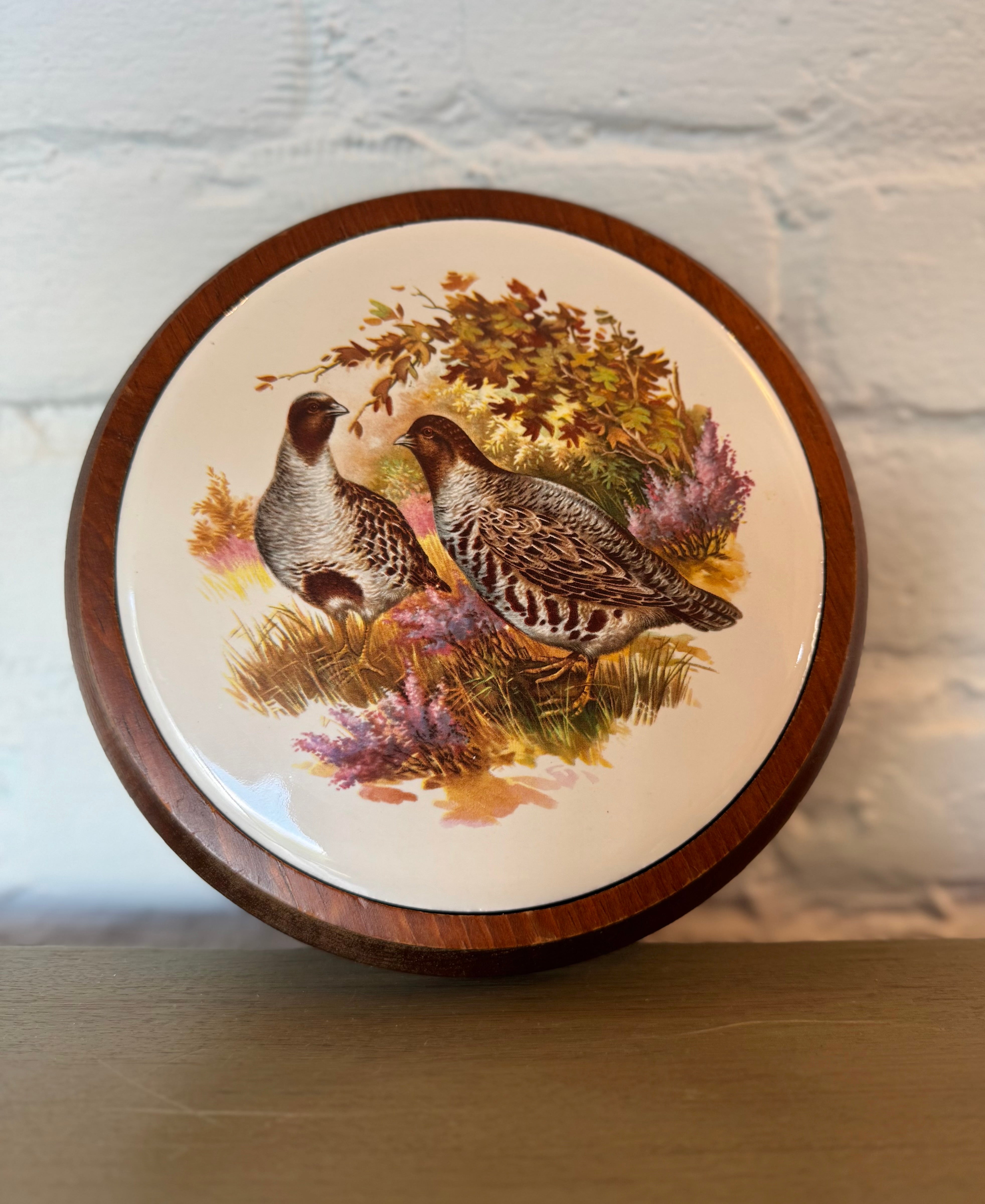 Vintage Ceramic & Wood Wall Plate with Game Birds